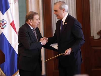 El Palacio Nacional recibió hoy a González Urrutia y a un grupo de expresidentes miembros del Grupo IDEA, que acompañan al excandidato venezolano en su recorrido por varios países que culmina hoy en Santo Domingo.